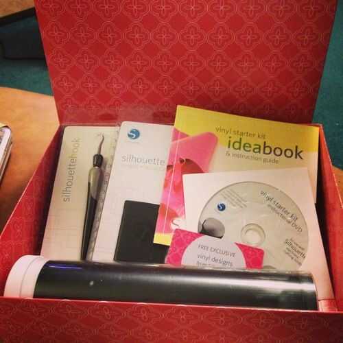 Recientemente he comprado un kit de inicio de vinilo de Amazon también está disponible en la tienda de la silueta. El kit viene completo con un DVD instructivo, 4 colores de vinilo, un libro de idea, una tarjeta de descarga de descargas exclusivo vinilo, vinilo gancho y raspador.