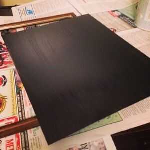 Esto es algo que hago a menudo convertir un cuadro en una pizarra. Es relativamente barato y ya tiene un mecanismo de suspensión. Todo lo que necesitas es pintar el vidrio con 2-3 capas de pintura de pizarra. En este caso ya que estoy aplicando vinilo a la Junta y no utilizarla como una pizarra tradicional no tiza del tablero.