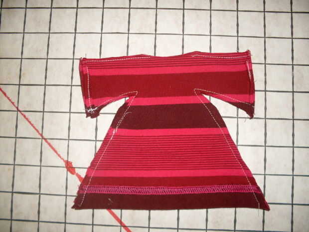 Coser por el borde y vuelta hacia el lado derecho hacia fuera. Cosas ligeramente y virar sobre la cabeza con una aguja e hilo.