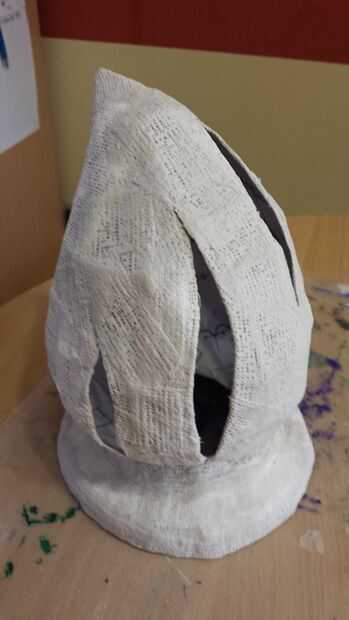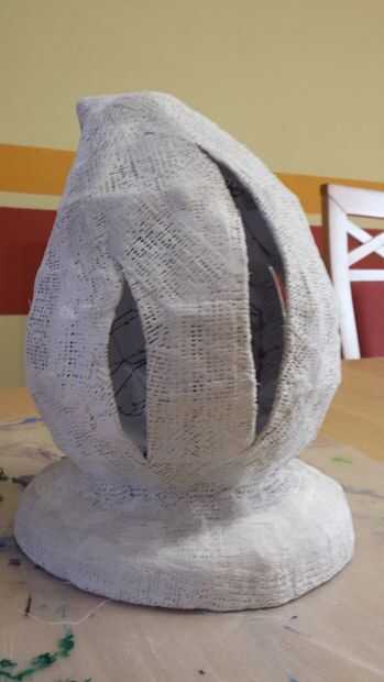 Luego le puse dos capas de vendas de yeso. Esto se convierte en una forma muy fuerte, pero aún frágil. Pero dado que casi cualquier lámpara es frágil, era lo suficientemente bueno.