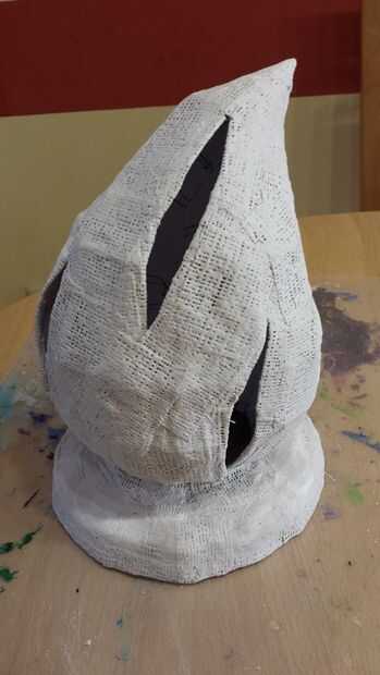 El cartón utiliza (creo que fue de 180 g/m2) era apenas lo suficientemente fuerte así que tuve que endurecer de alguna manera. Esta parte es un poco más complicada. Generalmente toma algunos resina para hacer eso, pero desde todas las resinas que pude encontrar hasta ahora son tóxicos y tuvo que ser manipulado con cuidado con mascarillas etc., acabo de ir con papel maché para la primera capa. Un gran error que hice fue cortar los agujeros en el cartón antes de poner el pegamento y el papel de. Tan pronto como empecé con el pegamento, todo era suave y casi "fundido". Pero salvó tan pronto como el pegamento era mitad secas y formado detrás. Por cierto utilicé pegamento de papel pintado para el papel maché.