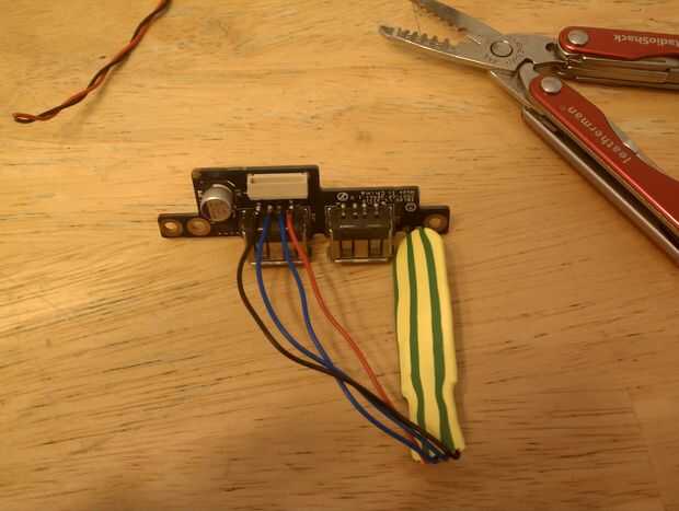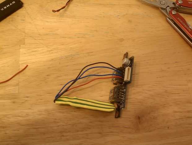 - A continuación usted debe tomar el dongle lejos de su área de trabajo original para cortar y pelar los cables. Al volver a poner el dongle en su lugar y soldar los cables a los pins correspondientes en la parte posterior del conector USB. Su un poco complicado pero se puede hacer.