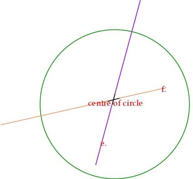 Donde se cruzan las dos líneas (morado y naranja) Cruz es el centro del círculo. (diagrama 6)