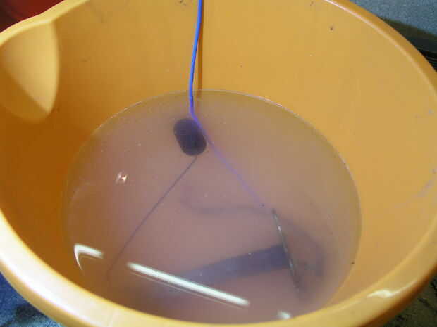yo no sabía esto hasta que BlimpEnthusiast me ha dicho esto en los comentarios: "instalación de electrólisis gran! En mi electrolizador usar bicarbonato de sodio como electrolito. Cuidado con el gas de cloro que proviene del electrodo positivo al usa