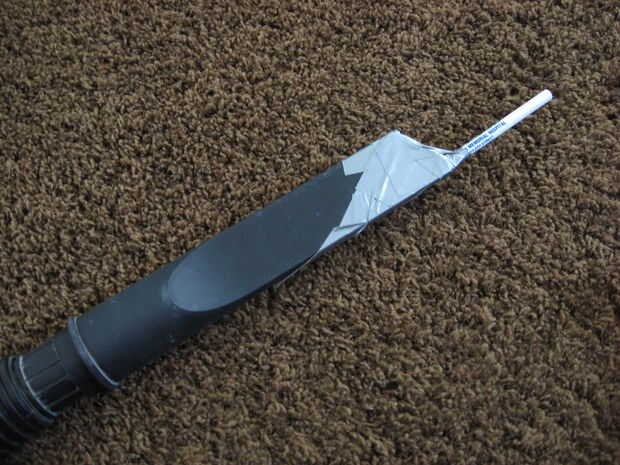 Grabó la sección del tubo de un bolígrafo Bic-estilo en la apertura de la boquilla, asegúrese de cinta lo suficientemente bien como para sellar el extremo de la boquilla así todos la succión se centró en la punta de la pluma.