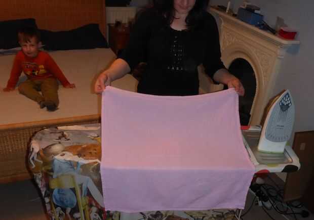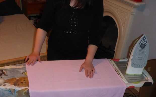 Deja el pañuelo en la tabla de planchar. Obtener una toalla o una funda de almohada y ponga suavemente sobre el pañuelo (cuando el pañuelo se seca alrededor del 70%).