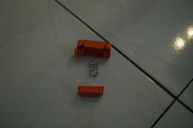 Quite los tornillos de plata que he observado en la imagen y quitar el resorte y la pieza de plástico que hace un chasquido cuando se incline hacia arriba y hacia abajo.