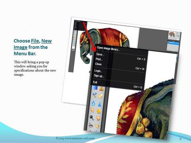De la barra de menú Seleccione archivo, luego Nueva imagen.