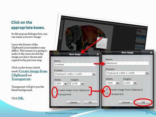Las dos casillas de verificación son importantes. Vamos a crear nuestra nueva imagen con la imagen en el portapapeles. Así que asegúrese de marcar esta casilla. El siguiente cuadro es transparente. Definitivamente queremos que esta casilla ya que es lo que queremos - ningún fondo.
