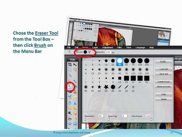 Sin embargo, debemos limpiar los bordes algunas. Elegir el borrador de la caja de herramientas y luego el cepillo desde la barra de menús. Usted puede elegir el cepillo de tamaño se siente cómodo con el uso. Puede cambiar esto en medio de su edición. Si vienes a un área más pequeña, puede hacer que el cepillo más pequeño.