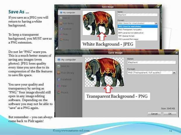 DEBE utilizar una extensión PNG para mantener un fondo transparente. Archivos PNG pueden ser abiertos con la mayoría de programas de software. Sin embargo, no es capaz de editar un archivo PNG en su software de edición de fotos personales. Pero usted puede siempre volver a Pixlr para editar.