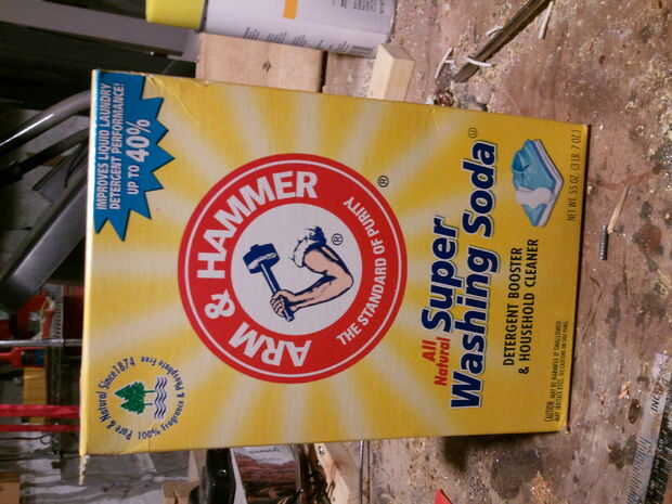 * Caja de brazo y martillo Soda de lavado. NO BICARBONATO DE SODIO. Sosa, que normalmente se encuentra en el pasillo de detergente de ropa. También puede ser utilizado para hacer tu propio detergente de ropa para los centavos a la carga.