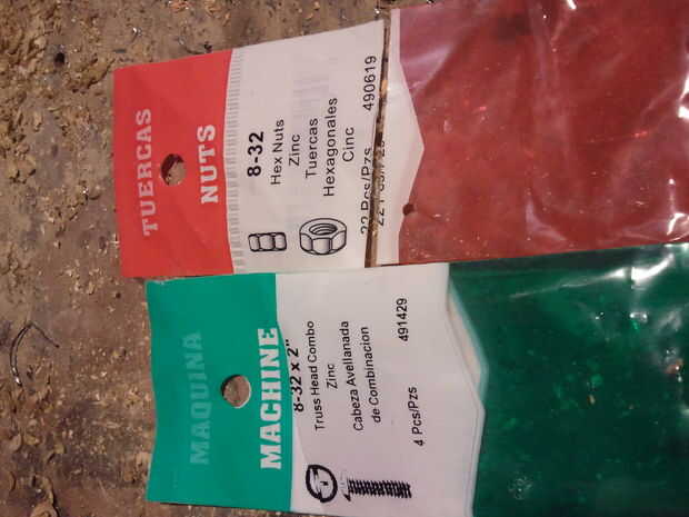 * 4 tornillos de acero 8 x 32 x 2", normalmente 99 centavos de dólar por paquete