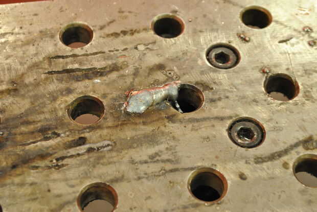 Con la amoladora de ángulo, aplique una ligera presión en el área de problema. Asegúrese de que el molino en movimiento. Una vez el grano hasta un tamaño más similar al de tamaño mediano salpicaduras, puede reemplazar la muela con un disco de la aleta y siga el paso 3.