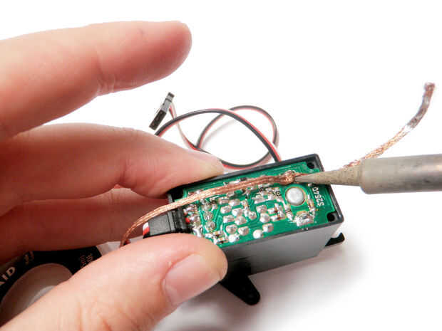 Localizar los terminales de soldadura para el motor DC. Estos deben ser los dos puntos más grandes de la soldadura en el circuito.