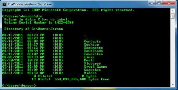 el comando dir muestra el contenido de la unidad