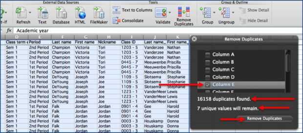 Eliminar valores duplicados en Excel para Mac (4 / 5 paso)