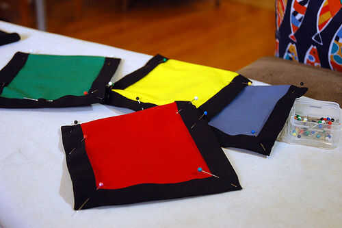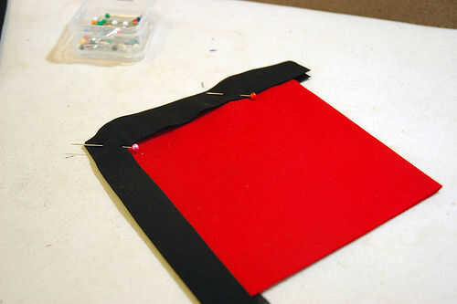 Pin atar alrededor de 3 lados crudos de bolsillos, dejando el pliegue acodado en la parte superior.