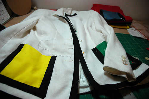 Tron. juego de Daft punk el alambre! disfraces de HalloweenPresentado mi diseño con hilo amarillo, luego ordenó a unos 100 pies de alambre. El color que elegí fue rojo-naranja. Mano cosió el cable con una chaqueta de cuero y vaqueros regular con acab
