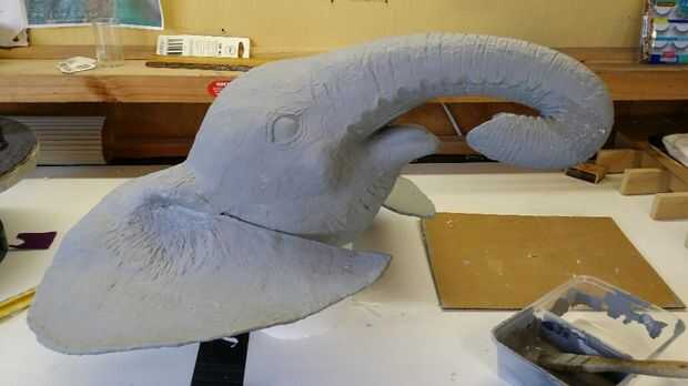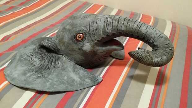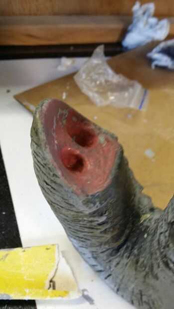 Pintura fue fácil como dos diferentes tonos de un color global. Todas las pinturas son acrílicas. Primero un gris más ligero aplicado con un cepillo, luego cuando que estaba bien seco un gris ligeramente más oscuro aplicado con un paño. Limpiar el gris más oscuro y luego frotarse ligeramente. Esto permitió que el color más claro todavía demuestre a través. Entonces llené todas las arrugas con negro otra vez limpiar la mayor parte de él para dejar sólo los hoyos más profundos y huecos negros. Limpiar como esto también significaba que el negro tipo de manchado en zonas añadiendo un tercer tono para su piel.