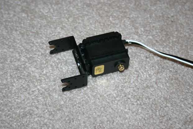 Instale un soporte de C para un soporte lateral con cuatro tornillos de 5mm M2 y tuercas. Presione cuatro tuercas M2 en la parte inferior de la servo de la parte superior del brazo derecho. Instale al combo de soporte de C/lado a la parte inferior del motor servo de la parte superior del brazo.