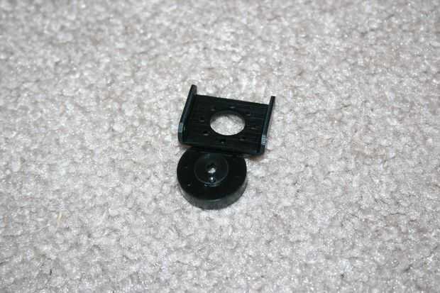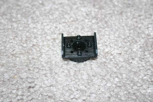 Conectar un cuerno del servo con un soporte lateral con cuatro tornillos de M2 de 5mm (suministrados con los motores servos). Se necesita una llave hexagonal de 1,5 mm para sujetar los tornillos. Con ligera presión, los tornillos serán del uno mismo hilo en el cuerno del servo plástico.