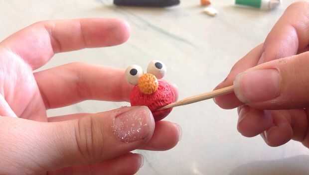 Sumergir la herramienta balling de la pintura negra y añada a las pupilas de los ojos en el medio