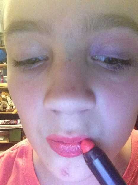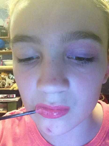 Aplicar una capa de frambuesa lip-stick. Pintar sobre él con el brillo de labios brillante.