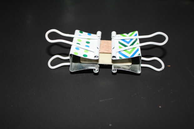 Trabajo rápido y pegar clips de carpeta como se muestra en la foto de arriba. Asegúrese de ver la chapa y que es estar en la forma cóncava de la clave. Usted puede bajar las carpetas "" centro y presionar sólo al labio de la llave así que asegúrese de que está recibiendo buena presión hasta donde te inscribes. Asegúrese de hacer un funcionamiento en seco sin epoxi una vez que el epoxi de la mezcla y colocarlo tienes muy limitado tiempo.