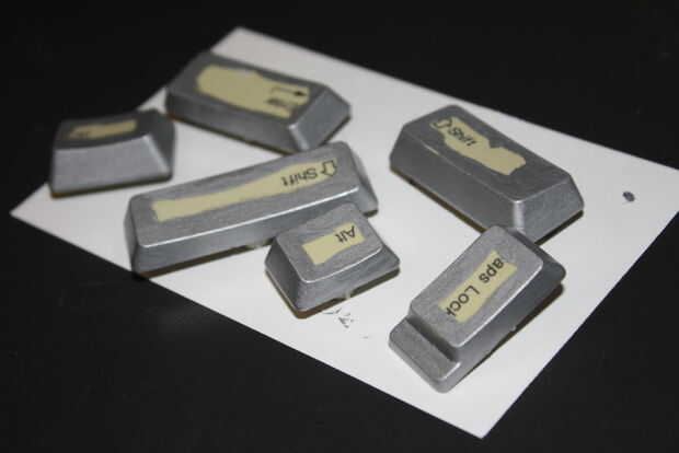Algunos trucos. Recuerde prestar atención a qué lado, si la clave va en la parte superior. Aquellos que son realmente observador habrás notado que la tecla de retroceso en mi teclado está al revés... larga historia. También asegúrese de saber cuáles son las claves (como dije antes etiquetarlos al pintar) como algunas teclas son del mismo tamaño y geometría.
