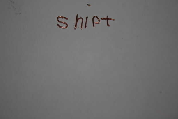 La imagen 7 es un experimento para ver sobre doblando alambre de cobre en la forma de las letras luego cualquiera les embutiendo en la chapa o epoxying a la parte superior. Me gustó el look y había desechado la idea.
