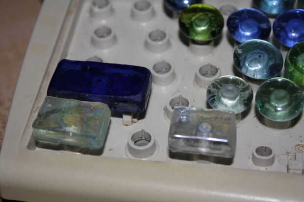 En la cuarta foto se puede ver que yo suelo abajo de la parte superior del grano, eliminando la parte superior redondeada. Esto es algo que seguramente habría hecho si el teclado fuera de mí o a otro adulto. La razón que digo que es tiene una sensación más "natural" que de esa manera mientras que las cimas redondeadas no siendo completamente en el producto final sería engorrosas para mí. Mi hijo de 4 años no sabe cómo escribir pero las teclas así como que son un tema no. El lado negativo a moler es conseguir el vidrio pulido para arriba totalmente liso no es tan fácil.