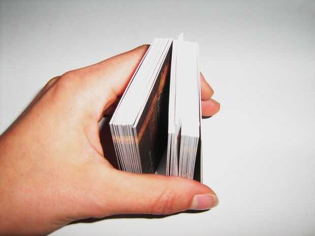 Lo primero que quieres hacer es asegurarse de que has conseguido todas las cartas de negocios frente a la misma manera y tan prolijamente apilados como usted puede conseguirlos. Mantenga apretado hasta el siguiente paso!