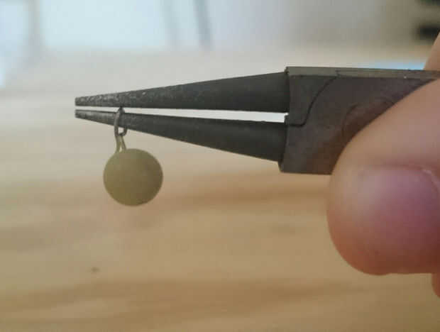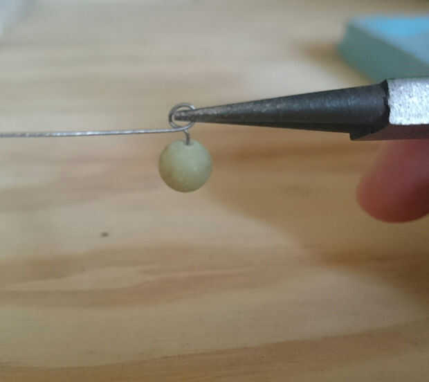 Sosteniendo firmemente, envuelva el pin/cable por debajo de sus alicates para terminar la creación del lazo. Lazo terminado debe parecerse a esto! Cuando se mueve en, necesita dos manos. Yo soy diestro, así que mis pinzas de punta redonda permanecen en mi mano derecha.