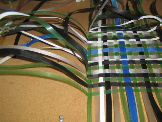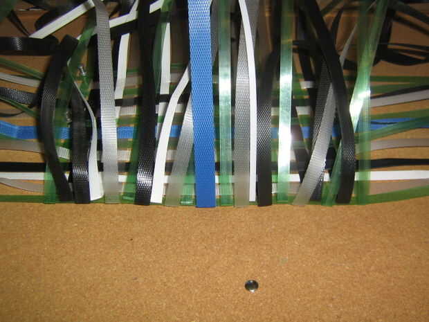 Después de que terminen con el plegamiento, poner cinta en el perímetro de la parte inferior de la bolsa para mantener las correas en el lugar.