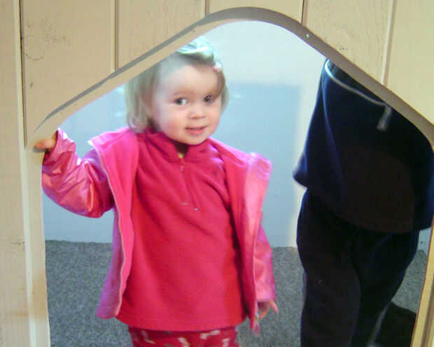 El castillo tiene repintado varias veces por los niños, por lo menos tanto de acumulación de graffiti como deseo de cambio. La figura final tenía un interior rosa y hiedra creciendo por todo el exterior (gracias a una plantilla de cartón y algunos pintura de cartel).