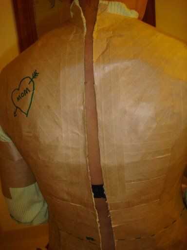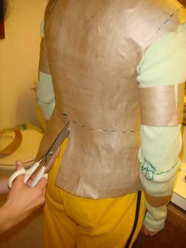 Usted está cortando a través de la cinta de papel y la camisa por debajo (que ahora es una parte de su dressform). Tenga cuidado de no cortar la persona o su ropa interior por accidente.