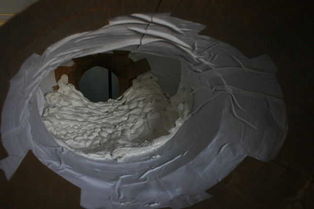 Estoy usando una capa de espuma aislante en aerosol para cubrir aproximadamente 1" en el interior (para que pernos se mantienen mejor). Si haces esto, basta con rociar una sección a la vez, deja secar y para unas horas, luego se voltea la forma y hacer otra sección de la.