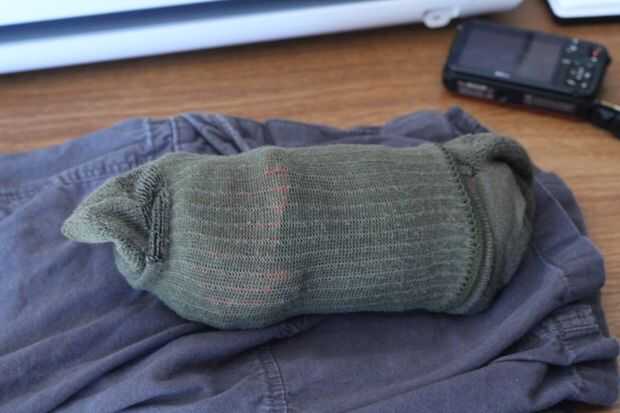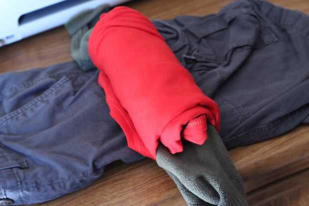 A continuación el rodillo la camisa con la ropa interior y calcetines en él. Luego los calcetines deben salir y tomar el extremo abierto de los calcetines y tire sobre la camisa.