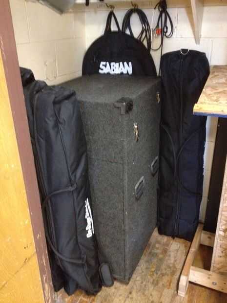 1 contra la pared posterior entre el gabinete de sonido y el podio