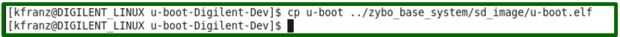 el duende (ejecutable y enlazable archivo) generado se denomina u-boot. Tenemos que añadir una extensión .elf al nombre del archivo para que Xilinx SDK puede leer el esquema de archivo y generar el arranque. BIN. En este tutorial, vamos a mover el boot.elf u a sd_image carpeta y reemplazar el boot.elf u que viene junto con el paquete de diseño de sistema de Base de Zybo.