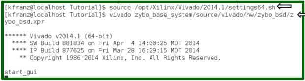 Nota: Hay cuatro archivos de configuración disponibles en el conjunto de herramientas de Vivado: settings64.sh para uso en máquinas de 64 bits con bash; settings32.sh para uso en máquinas de 32 bits con bash; settings32.csh para uso en máquinas de 32 bits con cáscara de C; y settings64.csh para uso en máquinas de 64 bits con C Shell.