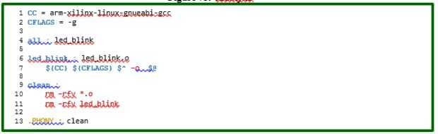 Componer un Makefile y compilar led_blink.c en led_blink.o, como se muestra en las tres imágenes en este paso.