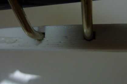 Una vez el cable del clip de papel, ajuste sus palitos para que se queda plano y fuera del camino. La parte ahuecada hacia fuera en el plástico debe ser lo suficientemente profunda para que no se peguen los hilos de su clip por encima del plástico. Si ellos, limar el cable hasta el estirador con seguridad puede pasar por encima sin golpear.