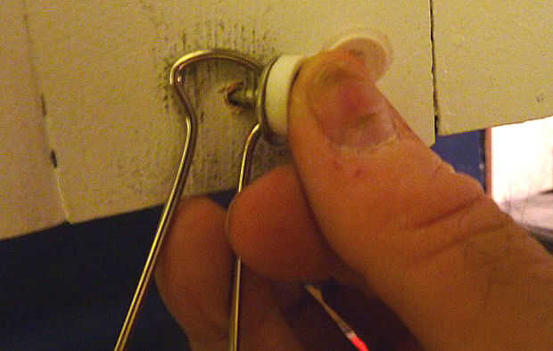 Ahora, sostiene el alambre no encajado ante el agujero perforó, empuje la punta del tornillo a través del centro del bucle de alambre y en el orificio. La lavadora debe ser lo bastante grande como para evitar que el alambre saltando. Atornille todo apretado y ajustar la tapa cerrada.