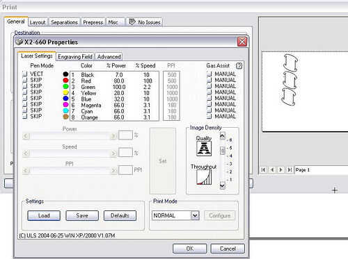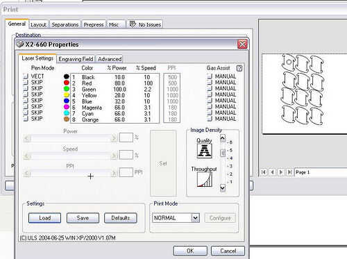Cada polígono tiene pequeñas secciones de colores en ((rojo)) Asegúrese de que estos son para saltar en las preferencias de la impresora. Estos son secciones pequeñas mantener los polígonos de conseguir aspirados por su sistema de escape. Todo color en el corte ((negro)) consigue o VECTORed. Aquí están nuestros valores para cada material: