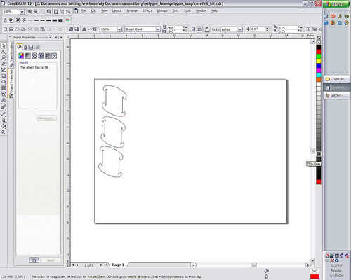 Repita estos pasos con r6_kit.cdr y r6.las (o configuración anterior) para el corte de los tres paneles de Rosco N.6. Misma idea, simplemente diferente entorno al 7% de la energía.