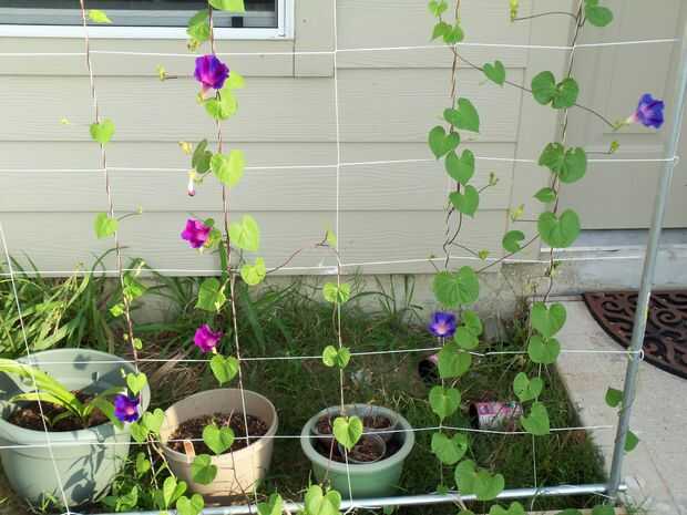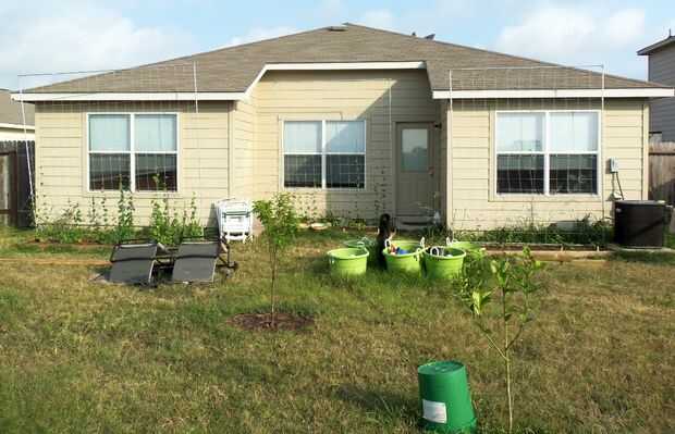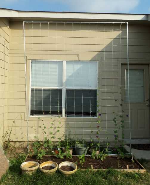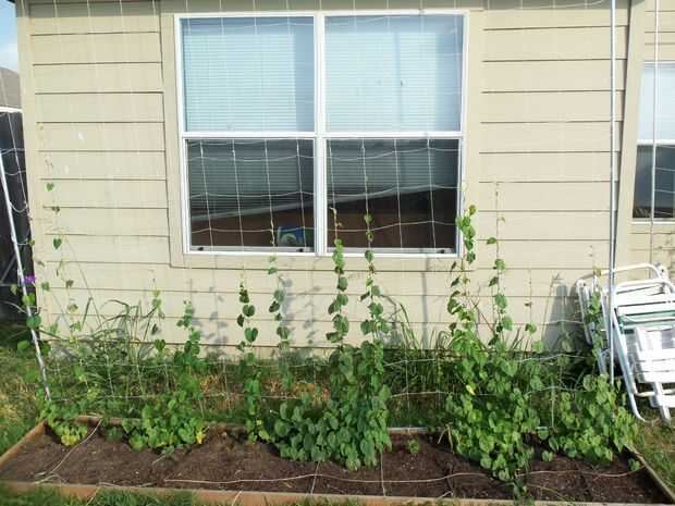 quisimos probar a ser más autosuficiente (ya sabéis, en caso de un Apocalipsis!), por lo que nos estamos convirtiendo nuestro patio trasero en un jardín, compramos varios frutales, construido dos jardineras cuadradas, tres cajas de rectángulo con una cortina verde. Tenemos mañana de gloria, enredadera de trompeta y Luna flores vides creciendo nuestra cortina verde. La cortina verde se bloquee algunos de sol y calor en las ventanas y reducir nuestra factura de electricidad en el largo plazo. Las vides de mi miren muy delgada ahora, pero cuando el sol está para arriba puedo ya ver que producen un poco de sombra en el suelo ya. También acabo de recibir la segunda compostera balanceo construido, para que finalmente podamos cortar la hierba hacia abajo en el patio trasero y marcha compostaje. La primera de ellas está llena de medio camino hecho compost. ¡ Yay! Excusa la forma del patio se ve, todavía estamos en la fase de construcción, y tenemos que cortar (verano está en pleno apogeo en Texas, y el resto del mundo dice su primavera... supuestamente.) Hemos construido un marco con nuestras frambuesas y moras silvestres suban a la red. Y por último hemos construido un marco en forma de "L", pones clavos en el interior de la estructura luego tejieron cuerdas de yute para formar una red y están dejando nuestras plantas trepadoras en el cuadro de plantador del jardín apoyado por él. Para evitar plagas, como los conejos y el perro de barrio que ha permitido vagar sin una correa y le gusta desenterrar nuestros jardines con grapas de alambre de pollo en la parte inferior de la valla a lo largo de la valla y había estacado a la tierra, así que él y los conejitos no pueden conseguir en. Sé que los conejos pueden madriguera, esto hace mucho más difícil para ellos, también no tenemos ningún vecino posterior, es toda tierra de granja, así que creo que dará para arriba e ir a comer el buffet algo que obra en nuestro pequeño jardín. Creo que cubre todo en la foto. Tenemos todo esto hecho en el espacio de unos 3 meses, todavía tenemos un par de cosas para hacer, como construir un gallinero para nuestros pollitos llegamos la semana pasada. Gracias por mirar!