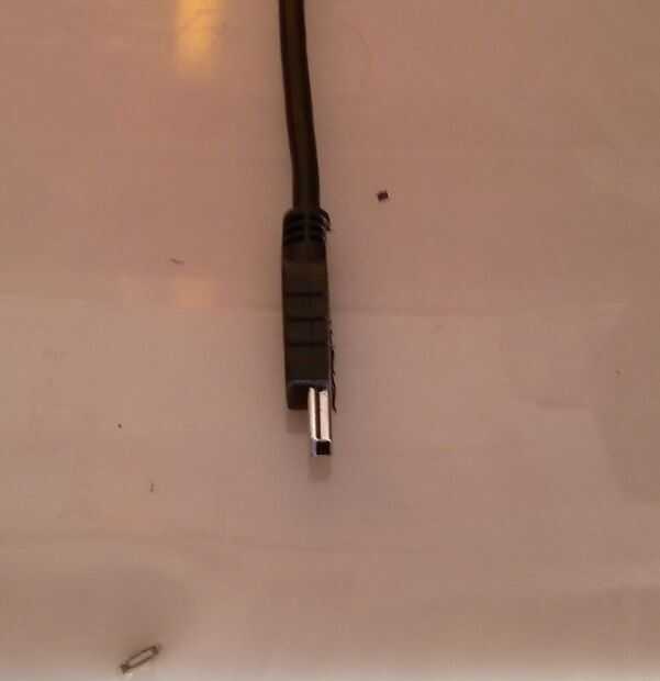 A acceso a Mini-USB toma un poco de las necesidades de plástico elimina del cuerpo. Esto se logra fácilmente cortando una muesca con un cuchillo afilado. El escudo EMI se puede cortar con un par de cortadores de alambre (el metal es muy suave) y fuera del camino con un alicate. Hay también un poco de interferencia entre el Mini-USB enchufe y cable HDMI, pero nada una lijadora de disco no puede resolver.