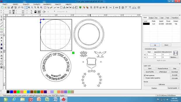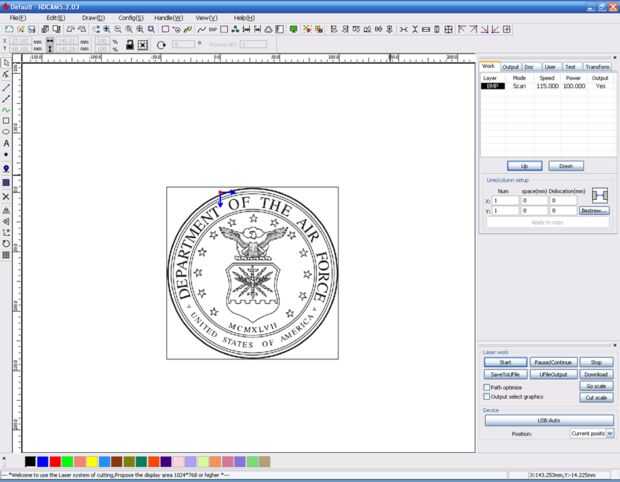 En primer lugar, configurar el área de trabajo en milímetros, ya que el software no funciona en métrico solamente medidas estandar. Después de establecer el área de trabajo de 4 pulgadas es el siguiente paso es importar el gráfico. Ahora, porque el gráfico es dejar de fumar más grande y luego la zona de 4 pulgadas, que tengo que usar la rueda del ratón para desplazarse hacia fuera. Una vez que el gráfico es el centro y llenar toda la pantalla y puedo ver el gráfico completo haga clic en ella para resaltarla y después eligió la manija de la barra de menú superior, luego "El identificador del mapa de bits", es donde consigo el croquis de la gráfica.